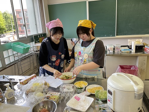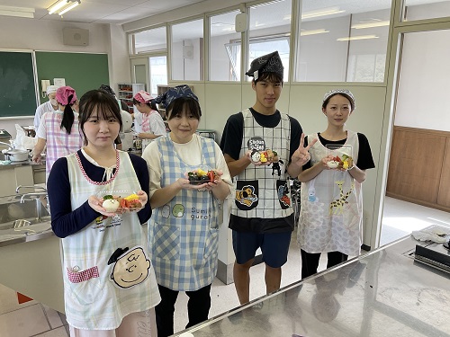 【授業風景】お弁当作り 2025.09.08学校の日常シリーズ 毎年恒例のお弁当作りを2年生が行いました 10時半から始まったお弁当づくりですが、11時頃には校内が美味しそうな匂いに✨ 調理室を覗きに行くと、なんとまあ楽しそうな顔がたくさん!! ついついちょっかいを出してしまいます。笑。 料理をする姿を見れるのは滅多にありませんが、意外と??みんな上手でした。( *´艸`)笑 社会人学生のおかげかな??笑 あんまり言うと学生に叱られそうなので、一旦はこの辺でお口をチャック(=×=)。 この笑顔で施設実習を乗り越えてきてね~!!